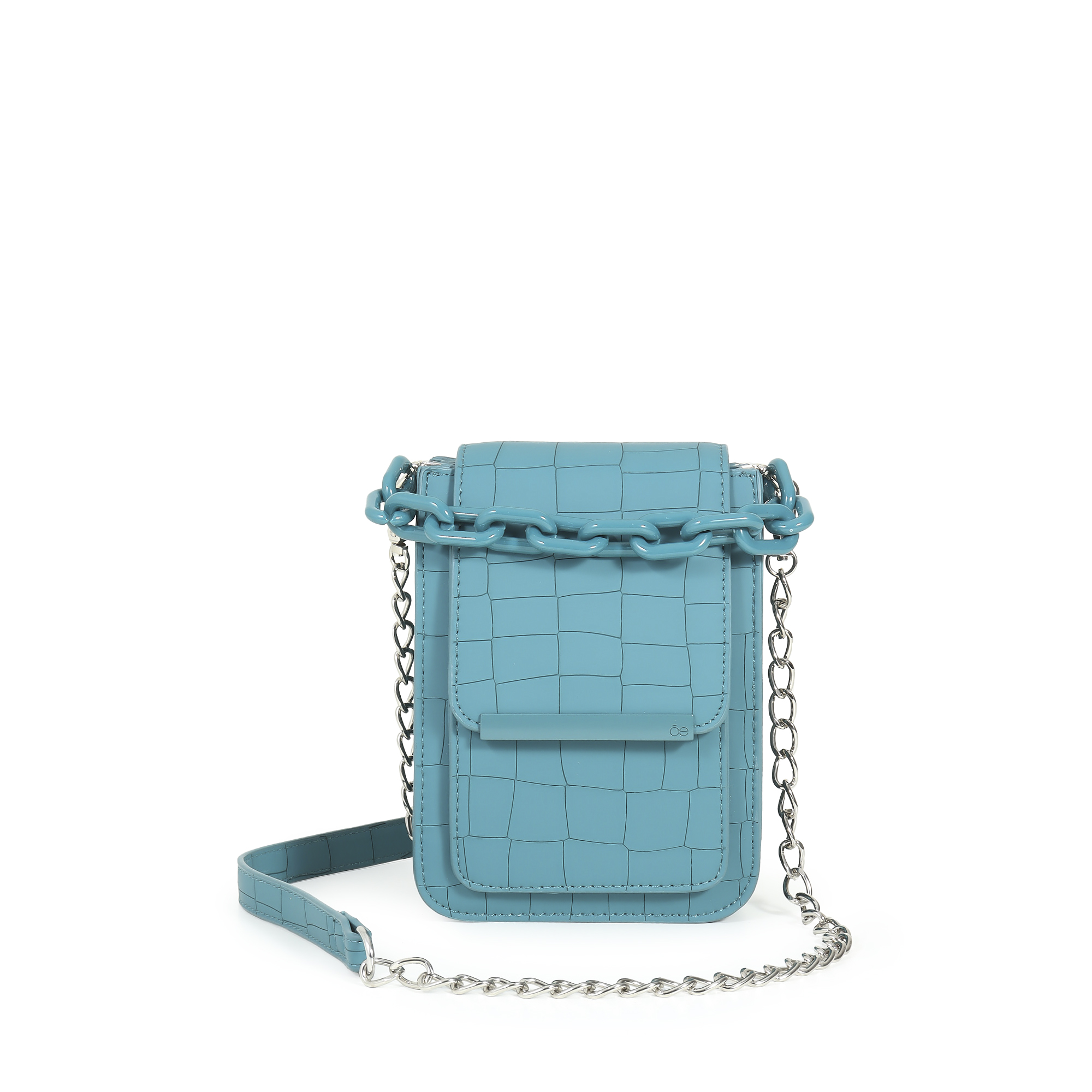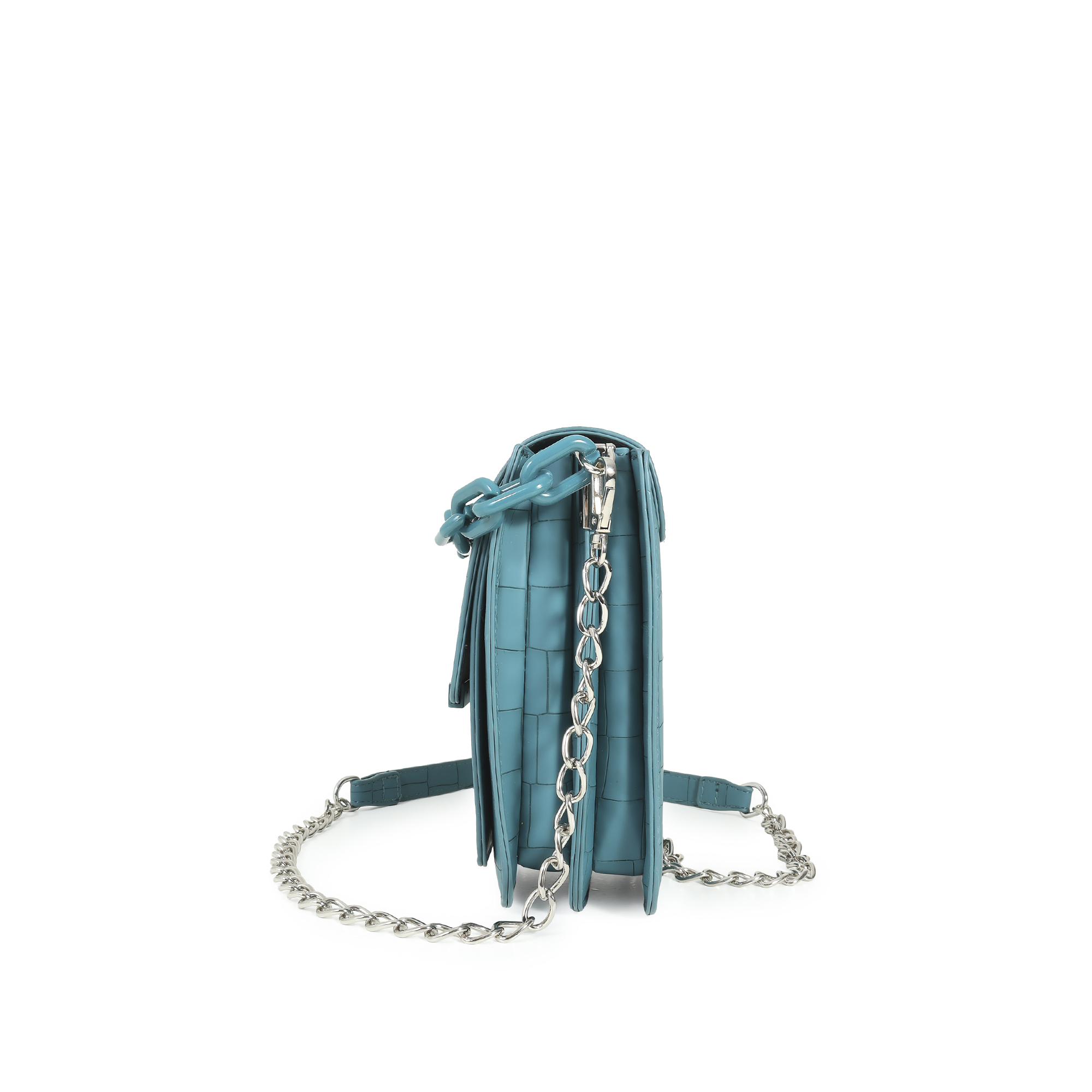Bolsa Crossbody Look Animal Skin Cadena Acrílica color Azul Petróleo