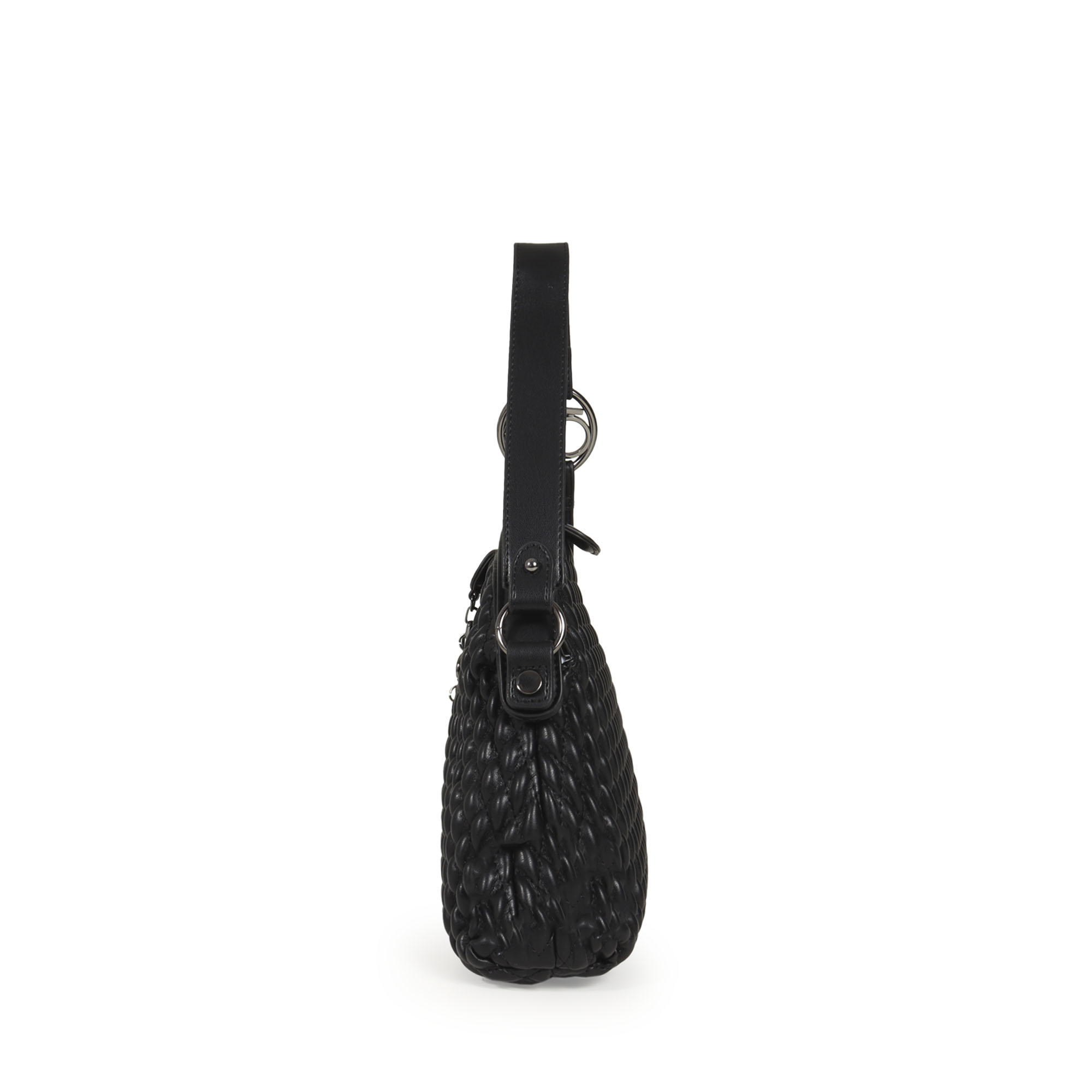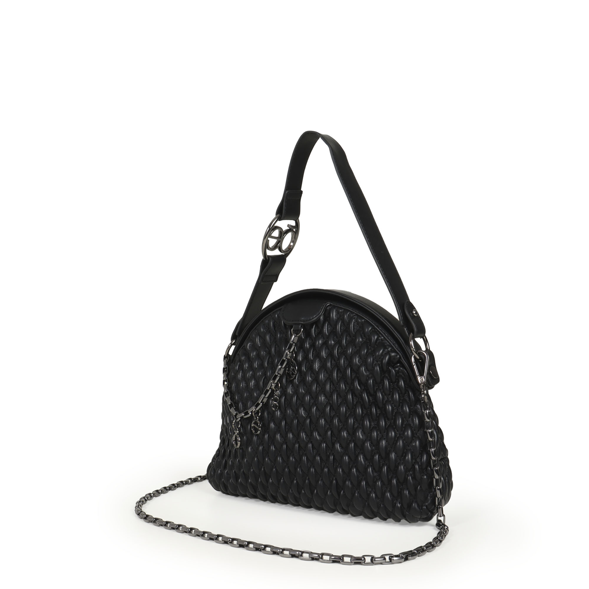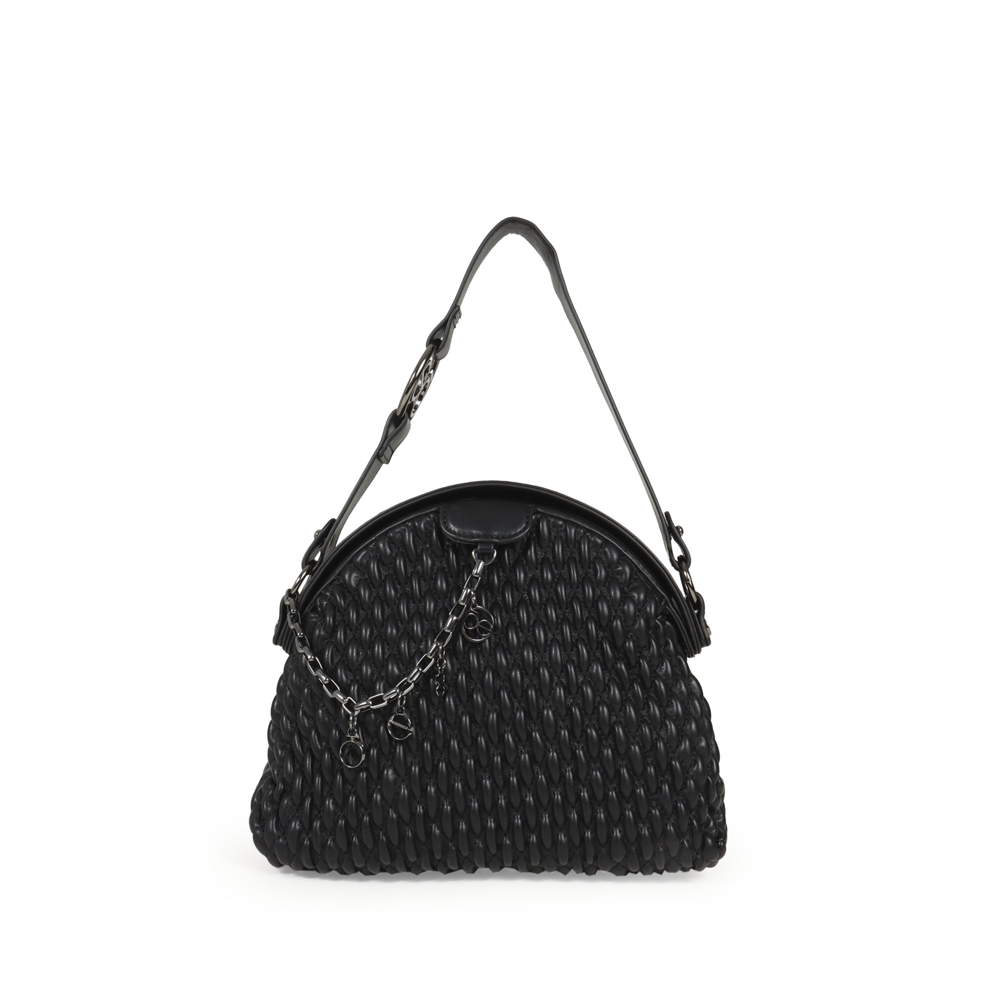 Bolsa Satchel Acolchada Charm Cadena Metálica color Negro