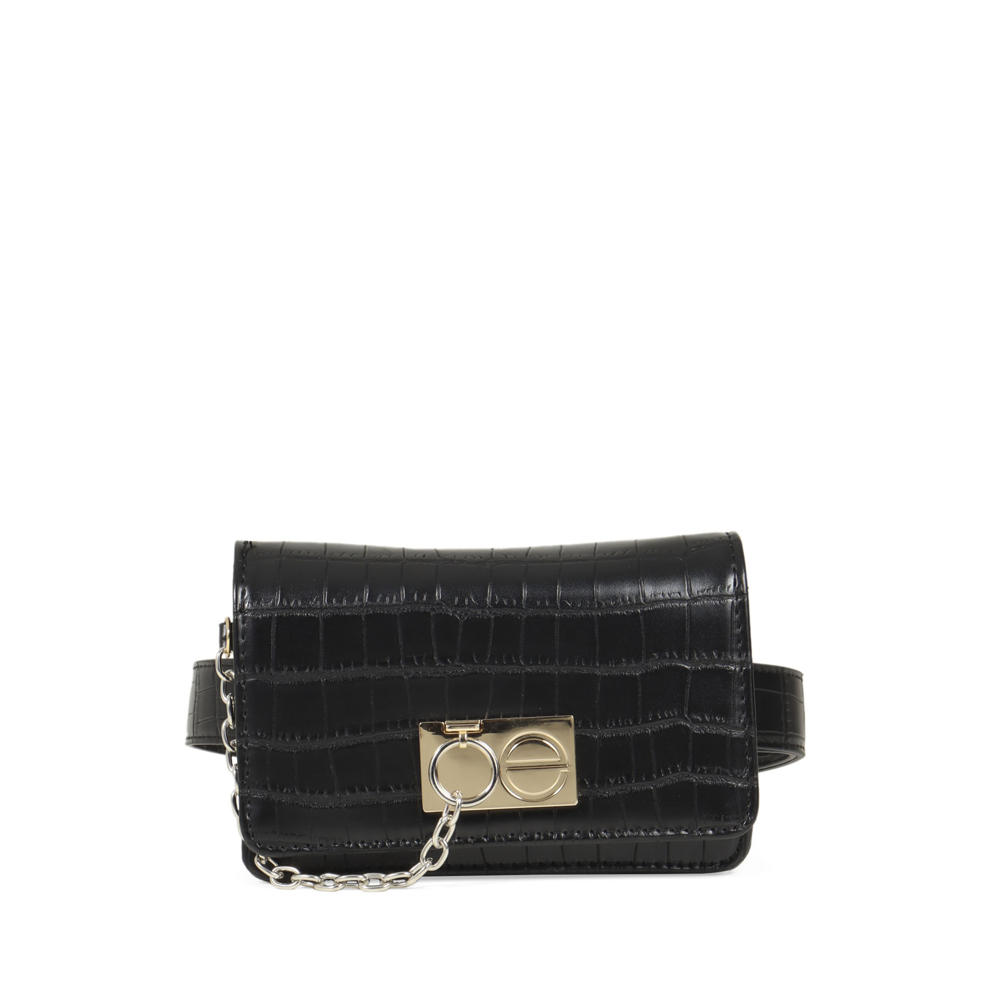 Bolsa Baguette Charol Acolchada con Monedero color Negro