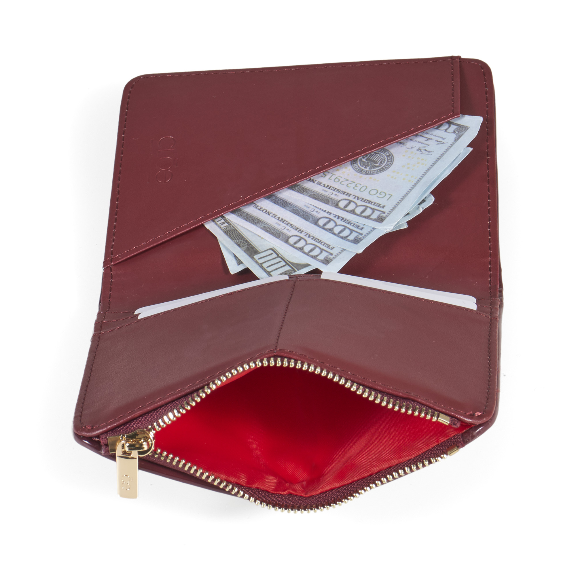 Cartera Flap Porta Pasaporte Charol color Rojo Tinto