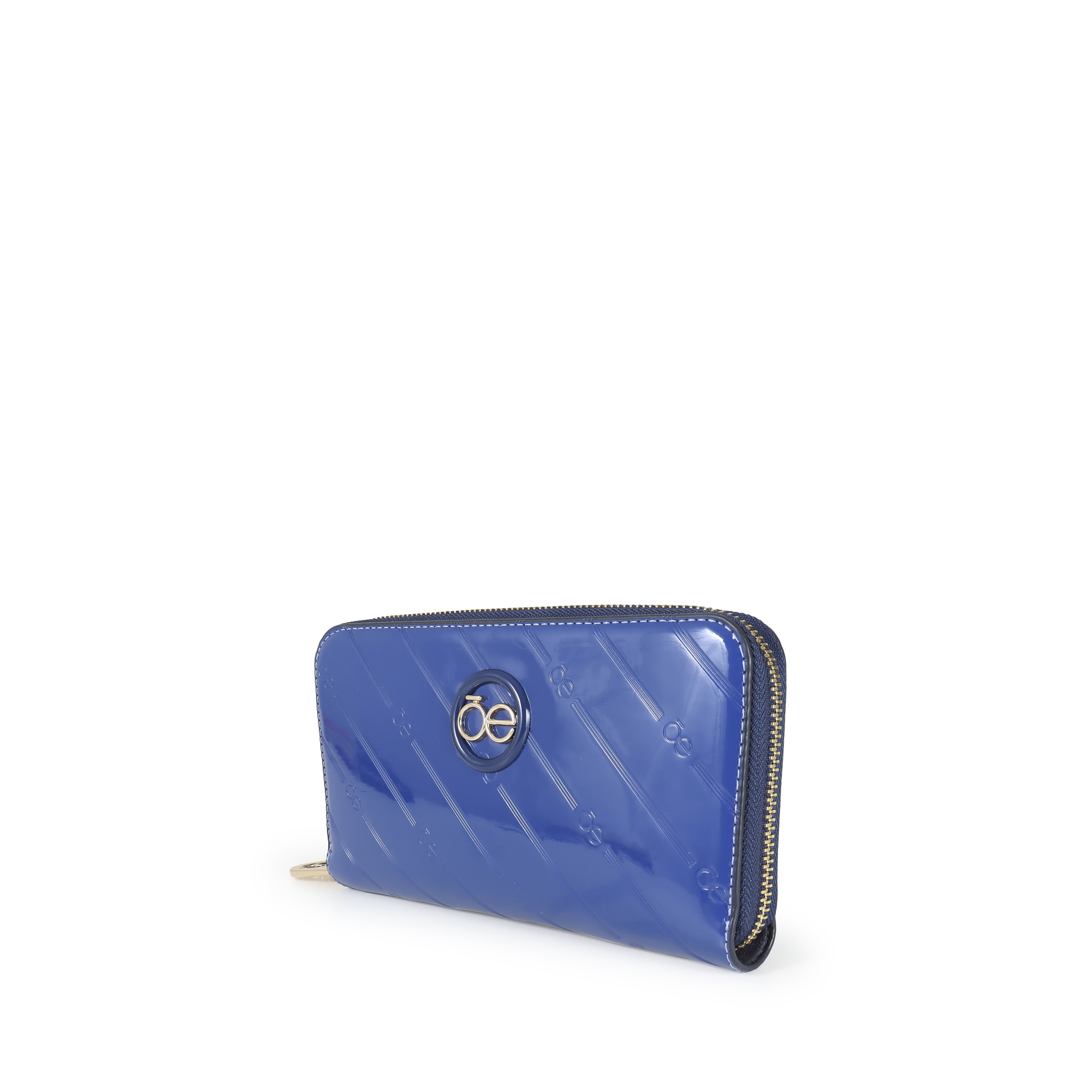 Cartera Grande Cierre Sencillo Charol color Azul Eléctrico